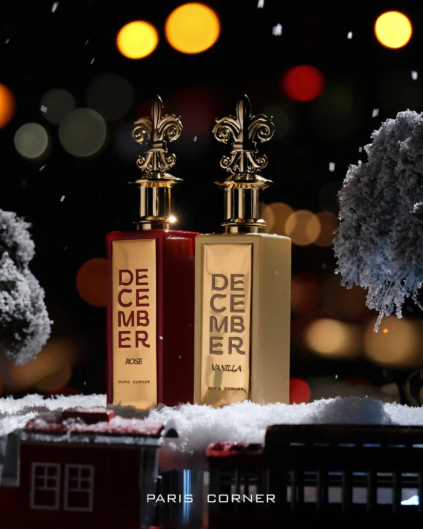 Inima parfumului December Rose celebrează regele florilor – trandafirul – cu nuanțe verzi și cremoase, puse în valoare de accentele elegante de geranium și magnolie, care completează armonios buchetul floral.