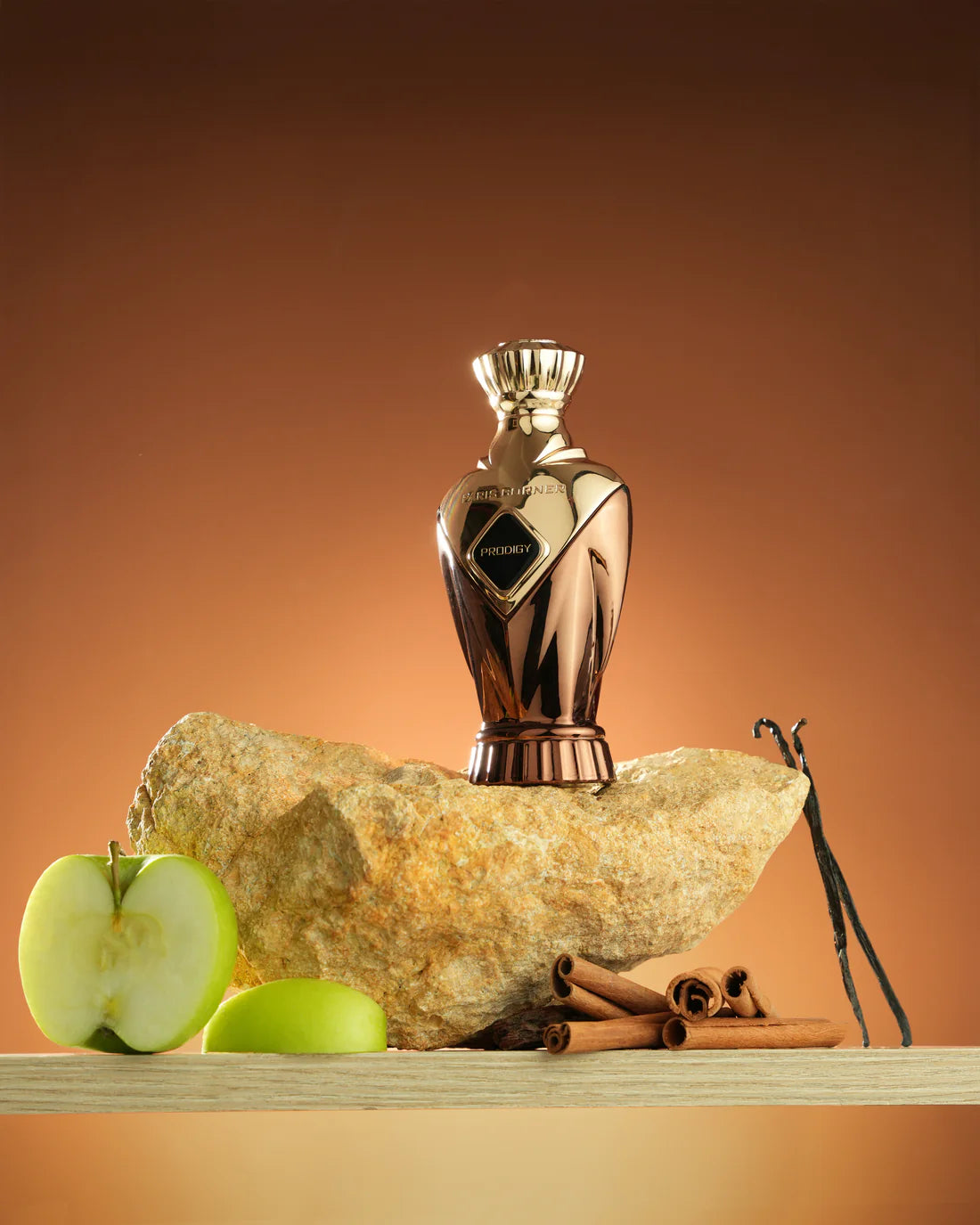 O capodoperă a echilibrului și seducției, Prodigy se deschide cu prospețimea portocalei, căldura scorțișoarei și crocanța mărului verde. În inimă, florile albe delicate și bogăția aromatică a salviei sclarea se împletesc cu ambră aurie, creând o aură radiantă și sofisticată. Uscarea pe piele dezvăluie un amestec captivant de vanilie catifelată, boabe de tonka, note lemnoase ambrate și mosc delicat, lăsând o urmă reconfortantă și irezistibil de magnetică. Creat pentru vizionarul care sfidează limitele și inspiră măreție.